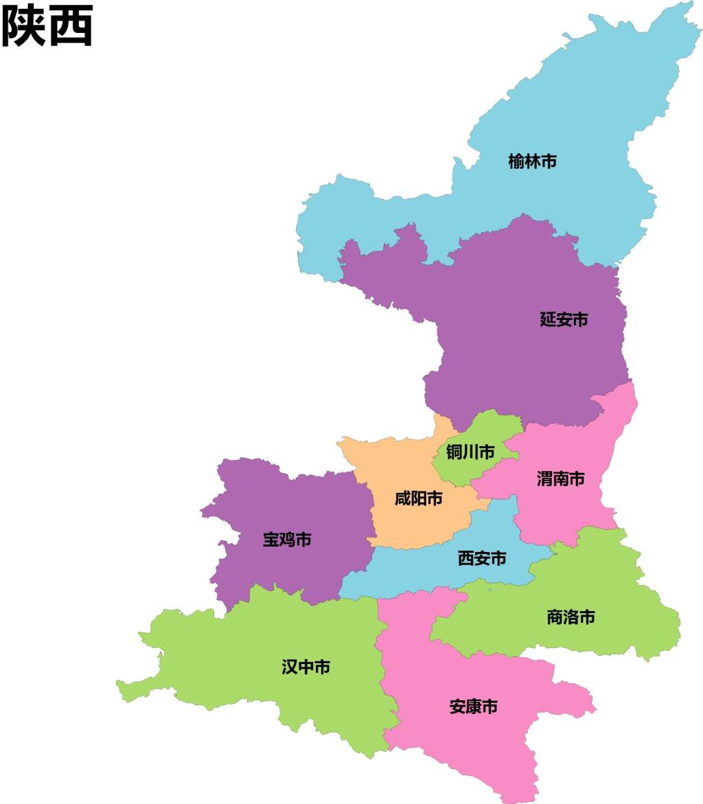 陕西省AI/CDR/EPS轮廓矢量可编辑填色高清电子版地图