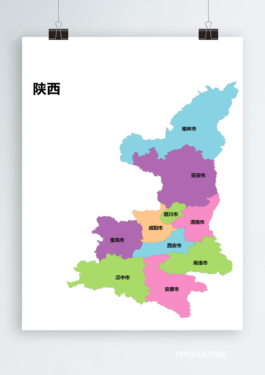 本作品内容为陕西省AI/CDR/EPS轮廓矢量可编辑填色高清电子版地图, 请使用软件Photoshop(2019)打开, 作品中文字及图均可以修改和编辑,图片更改请在作品中右键图片并更换,文字修改请直接点击文字进行修改,也可以新增和删除作品中的内容, 欢迎使用闳图网。