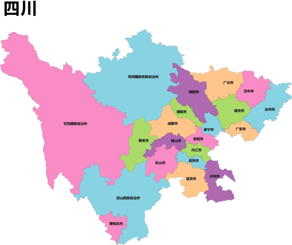 四川省AI/CDR/EPS轮廓矢量可编辑填色高清电子版地图