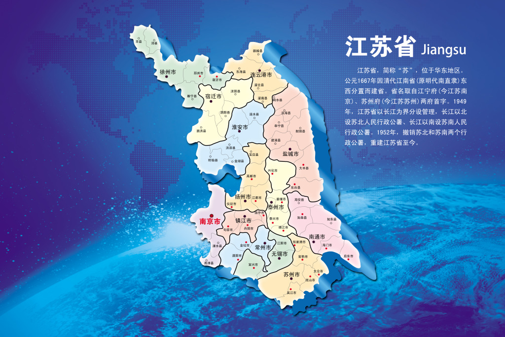 本作品内容为江苏省地图地区介绍, 请使用软件Photoshop(2019)打开, 作品中文字及图均可以修改和编辑,图片更改请在作品中右键图片并更换,文字修改请直接点击文字进行修改,也可以新增和删除作品中的内容, 欢迎使用闳图网。