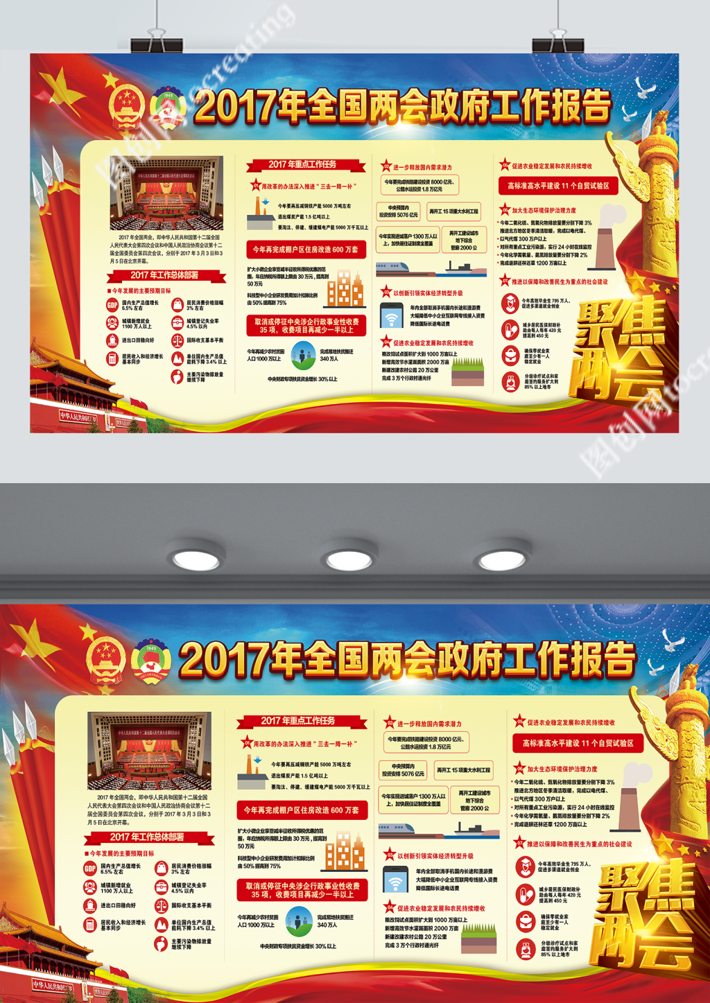 本作品内容为全国两会政府工作报告, 请使用软件Photoshop(2019)打开, 作品中文字及图均可以修改和编辑,图片更改请在作品中右键图片并更换,文字修改请直接点击文字进行修改,也可以新增和删除作品中的内容, 欢迎使用闳图网。