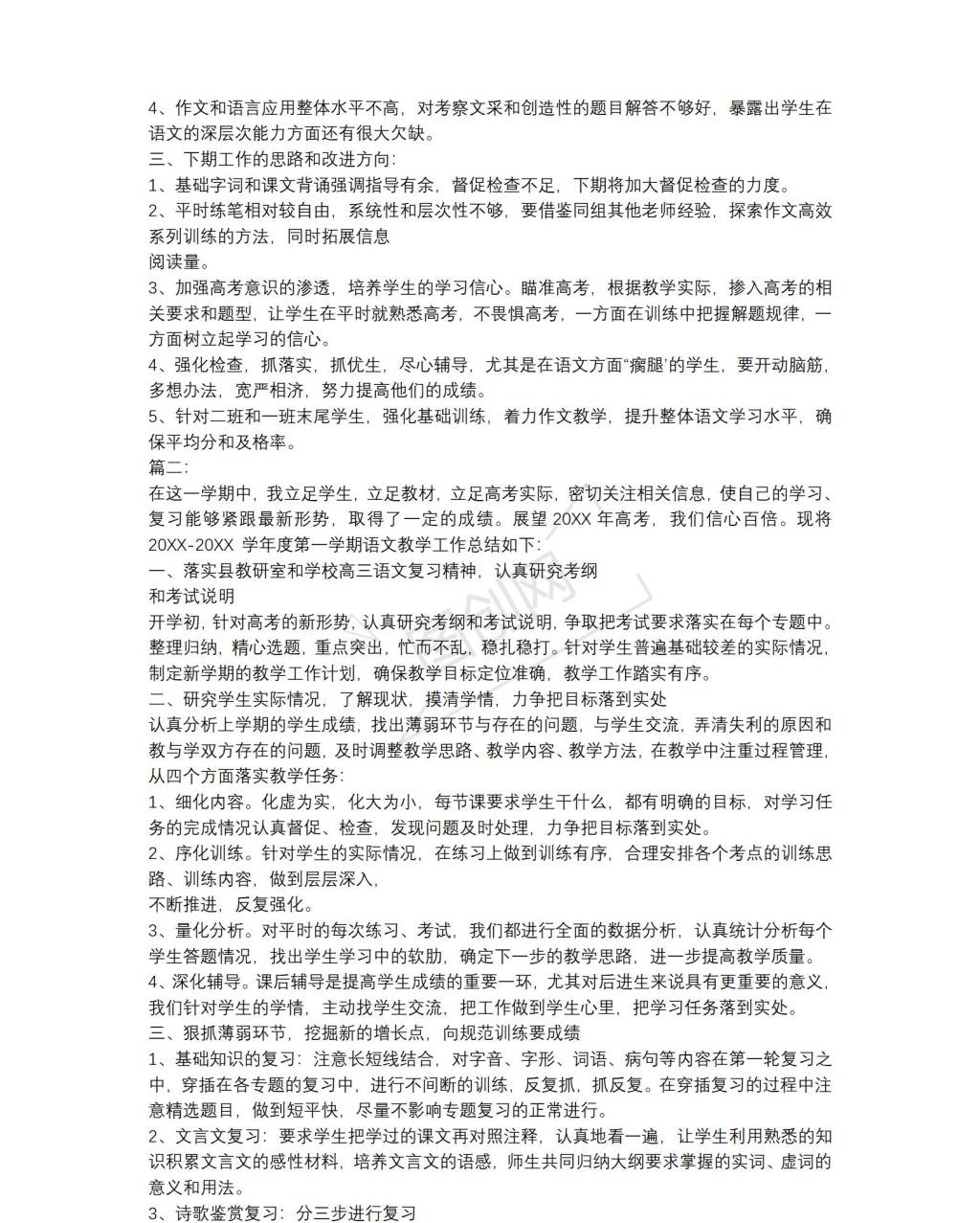 高中语文教学工作总结