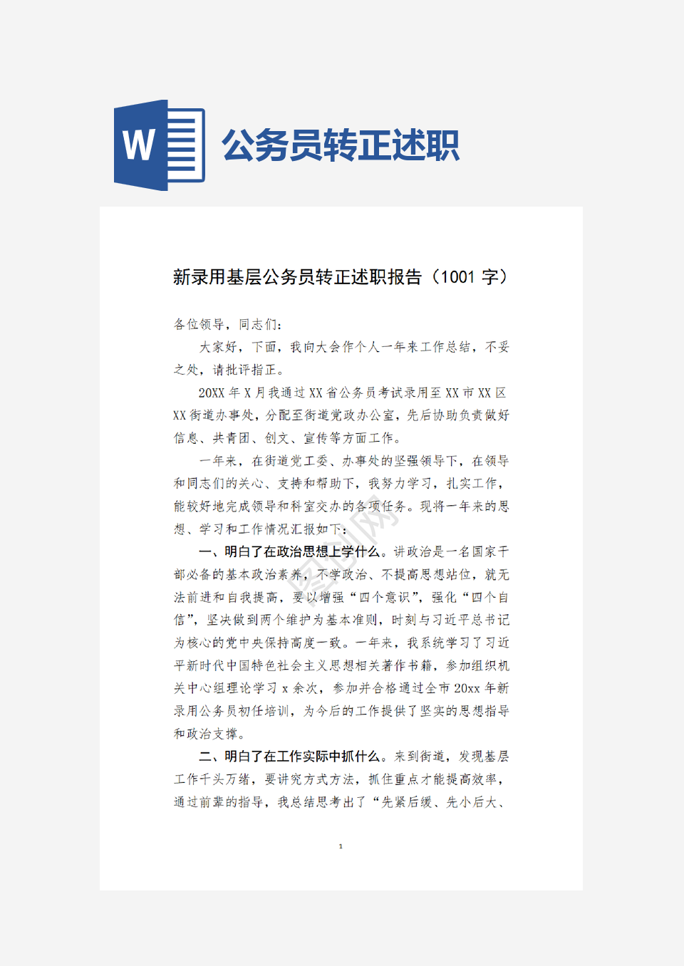 本作品内容为公务员转正述职, 请使用软件Word(2019)打开, 作品中文字及图均可以修改和编辑,图片更改请在作品中右键图片并更换,文字修改请直接点击文字进行修改,也可以新增和删除作品中的内容, 欢迎使用闳图网。