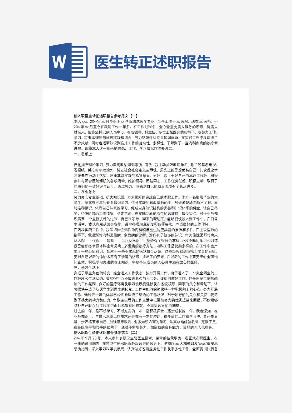 本作品内容为医生转正述职报告, 请使用软件Word(2019)打开, 作品中文字及图均可以修改和编辑,图片更改请在作品中右键图片并更换,文字修改请直接点击文字进行修改,也可以新增和删除作品中的内容, 欢迎使用闳图网。