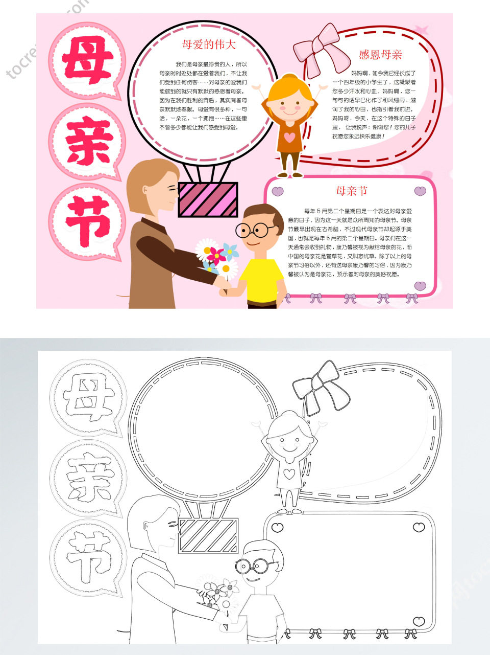 本作品内容为粉色温馨感恩母亲节小报手抄报word模版, 请使用软件Word(2019)打开, 作品中文字及图均可以修改和编辑,图片更改请在作品中右键图片并更换,文字修改请直接点击文字进行修改,也可以新增和删除作品中的内容, 欢迎使用闳图网。